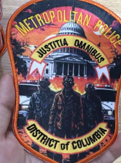 This DC Halloween Zombie Police Patch measures about 5x4 with an iron on backing. This patch is screen printed with an embroidery mix .